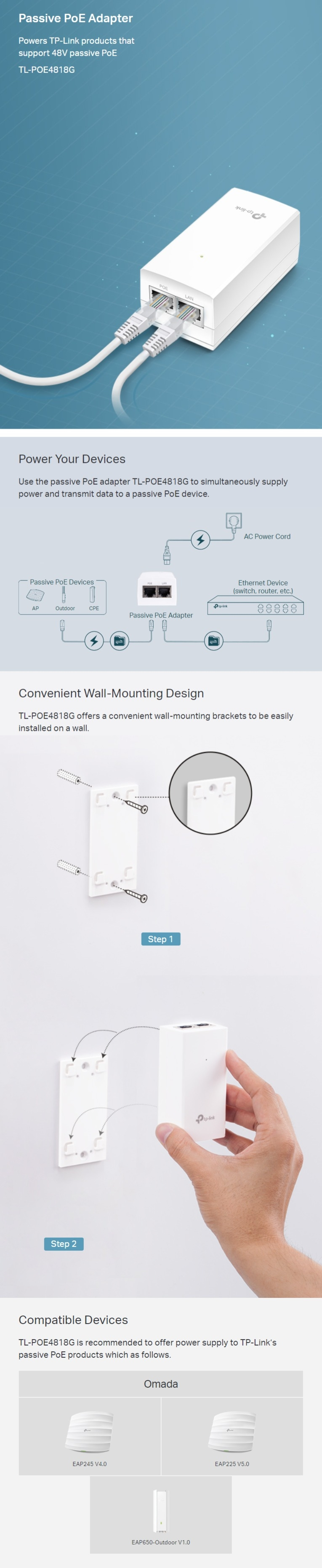 • 티피링크 TL-POE4818G 48V 패시브 PoE 어댑터